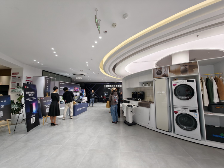 位于天津河西新梅江未来城市中心的LG Life Style体验店是LG在中国首家线下体验店,于今年8月21日开业,共有三层楼,面积达到了1160平方米,当中展示了LG前沿科技,并提供了“家电×家居×设计”一站式场景化解决方案。为了更好展示LG新款显示器,活动前对体验店二层进行了专门改造。