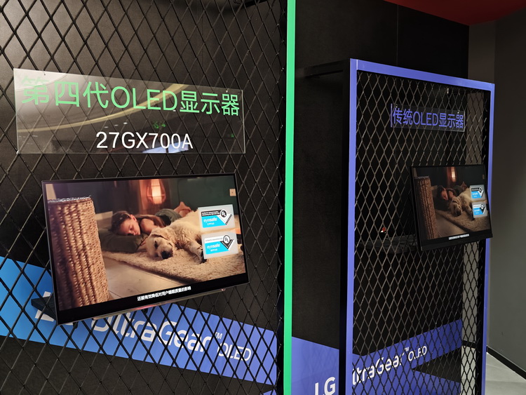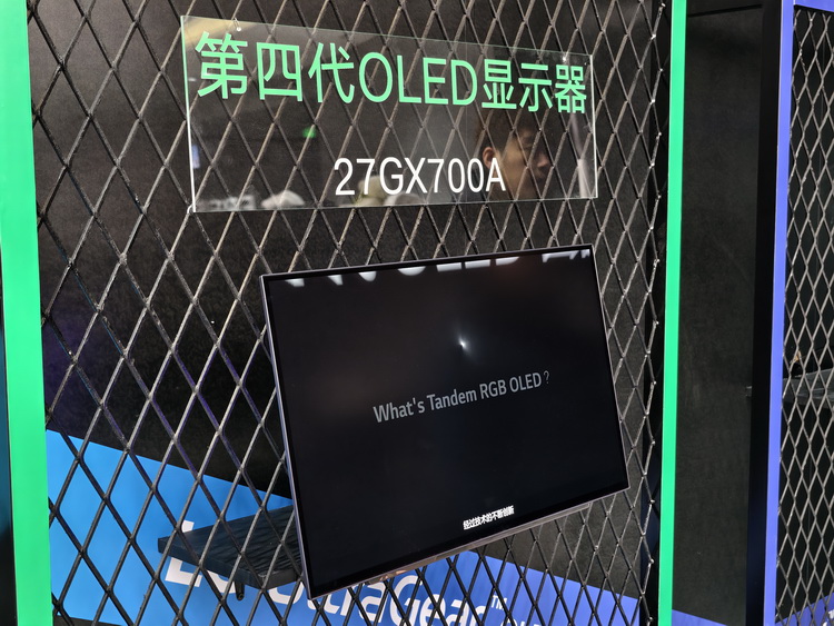 如前文所说,LG不仅有消费端产品,而且具备面板研发、生产能力,因此它在活动上展示了其第四代OLED技术,它采用了Primary RGB Tandem结构,显示屏的各个元件以串联方式连接起来,而且将原本在同一层的红色和绿色分别独立成层,形成总共四层的结构,形成了RBGB四层,因此不仅亮度可以提升至4000尼特,而且色彩纯度大幅提升,色彩亮度相比此前提升了40%,达到了2100尼特,并可覆盖99.5% DCI标准色域。目前,LG已经将第四代OLED技术应用到27GX700A等产品上。